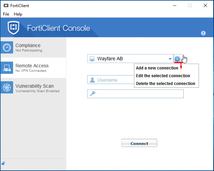 Before you can connect you have to configure the Wayfare VPN connection.