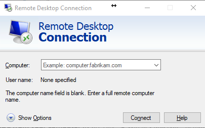 Open RDC from your computer by pressing Win Key and type “Remote Desktop Connection” or Win Key + R to open Run “mstsc” ( both ways will open RDC )